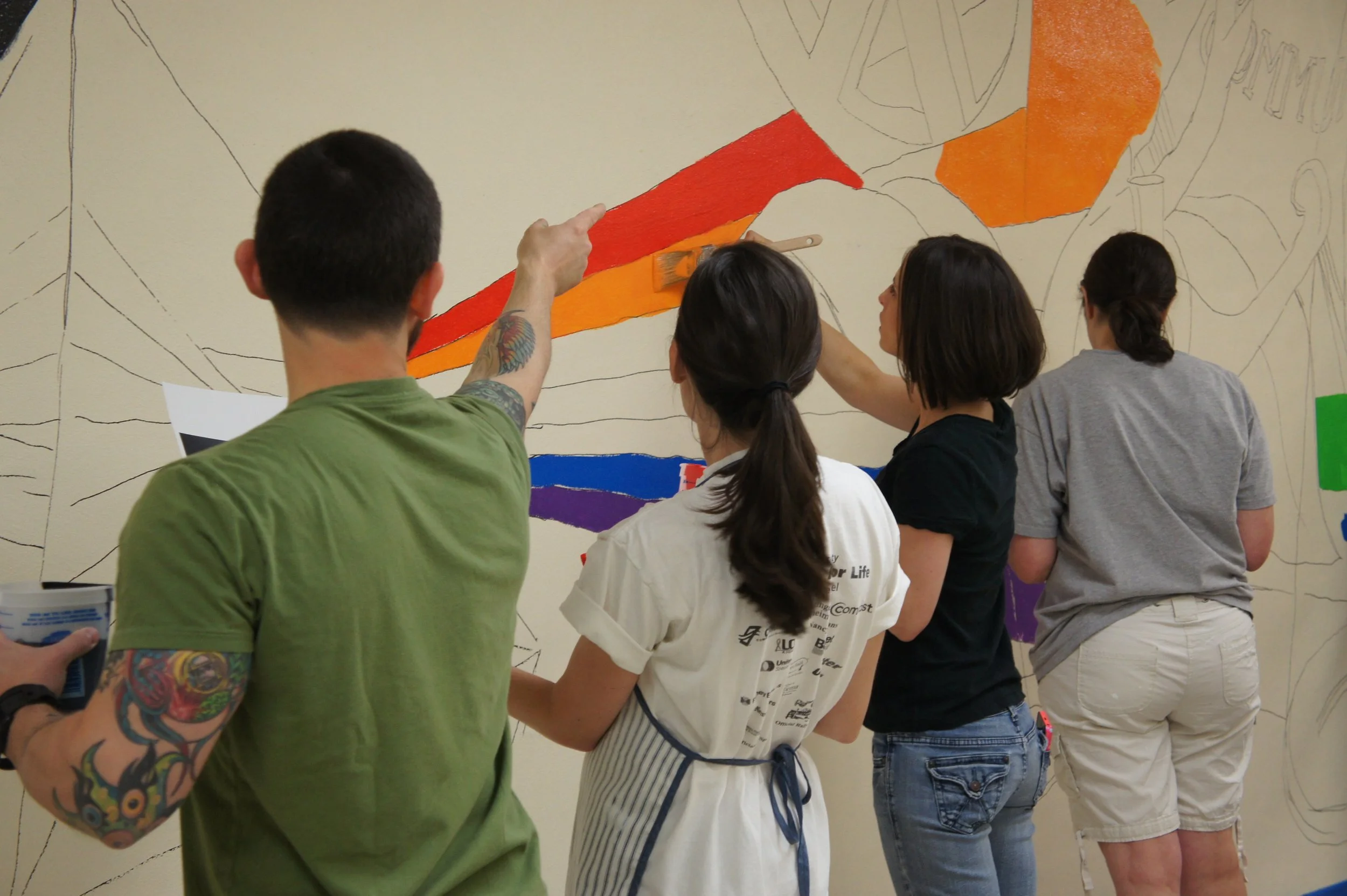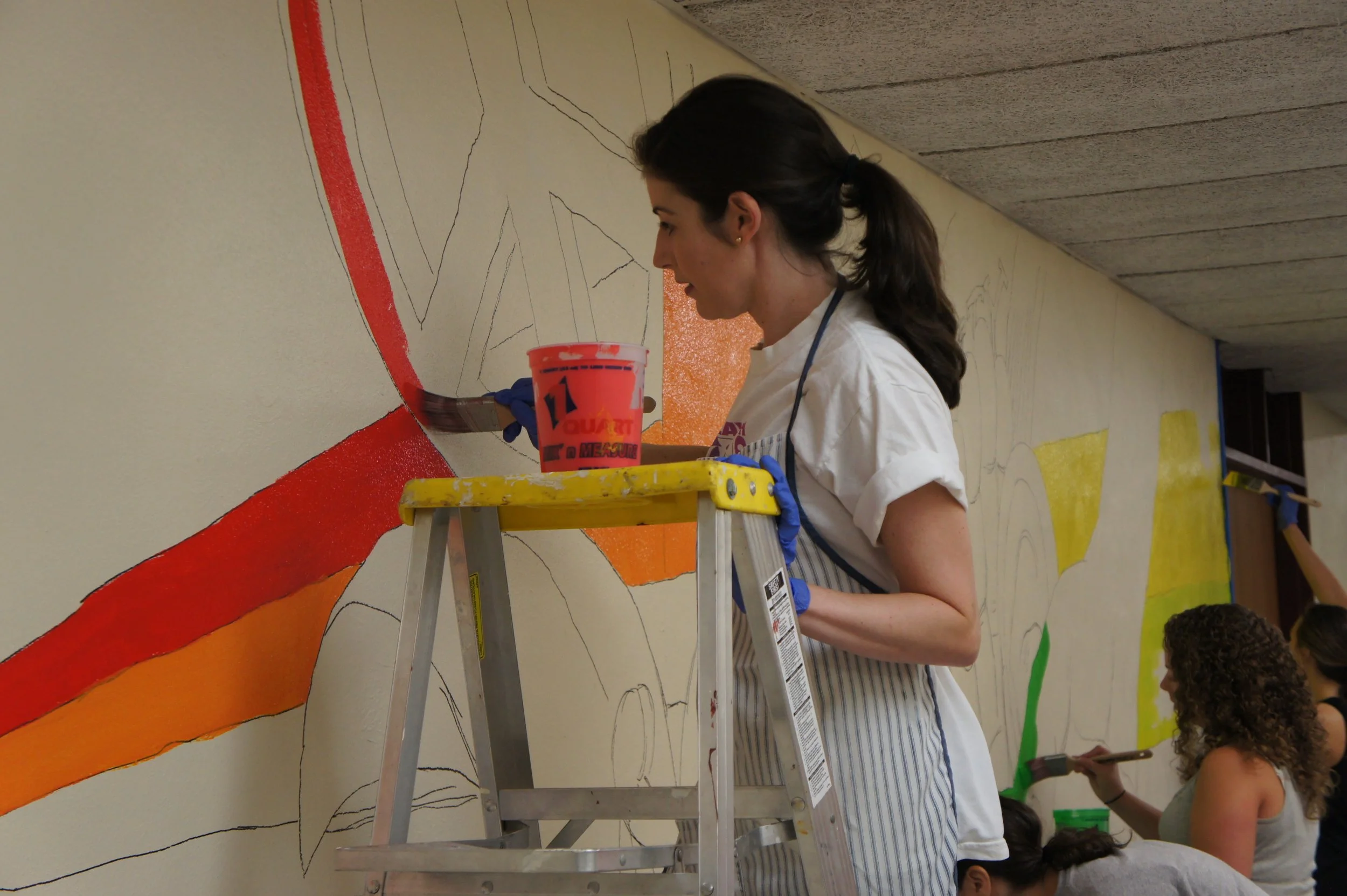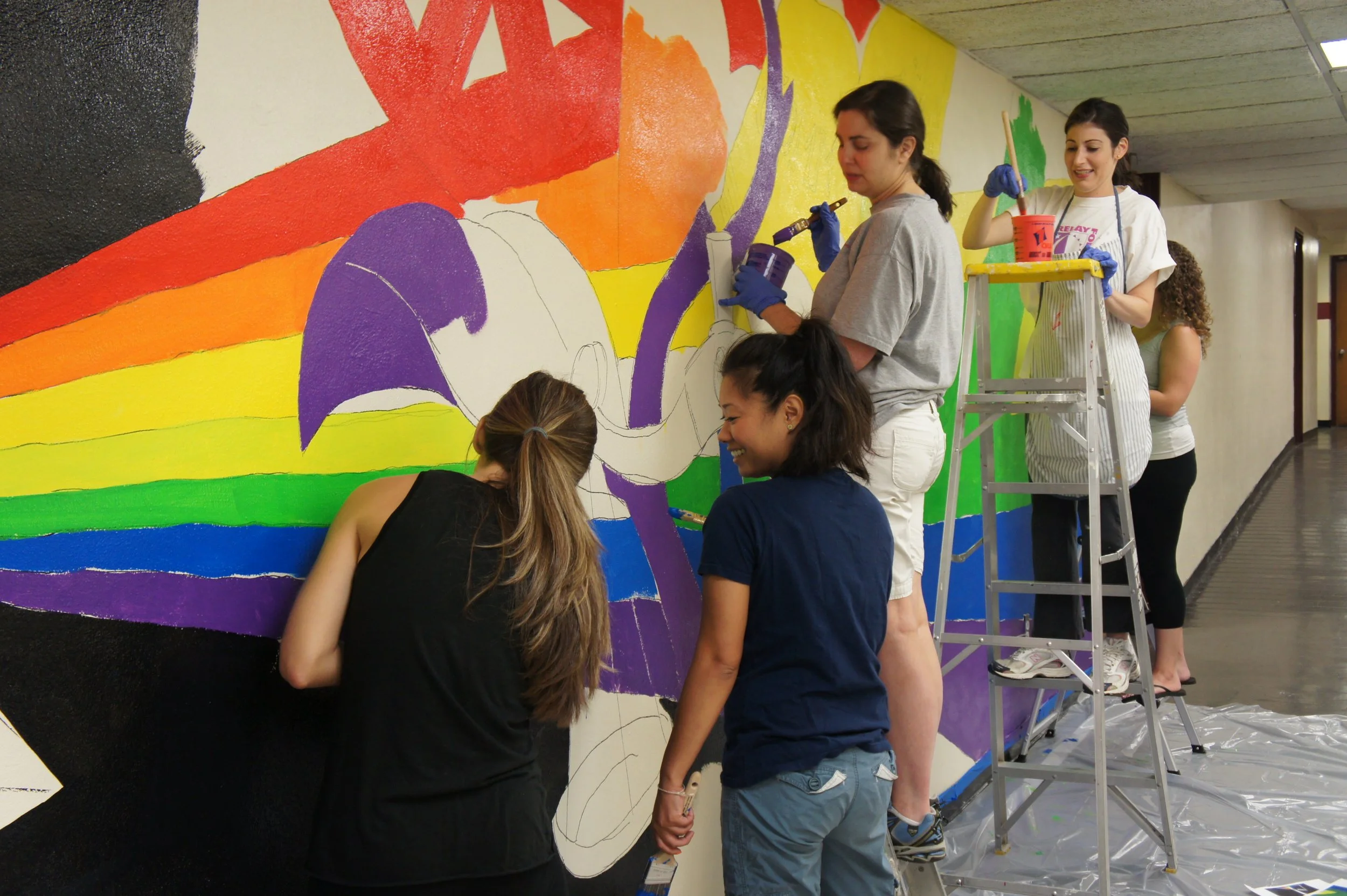 I collaborated with Domus’s administration to incorporate the tenets of their organization into the design of the mural, including them in every step of its development. I coordinated preparation with a partner in my employer’s human resources department and organized the volunteers to execute the application of this mural in a single day.