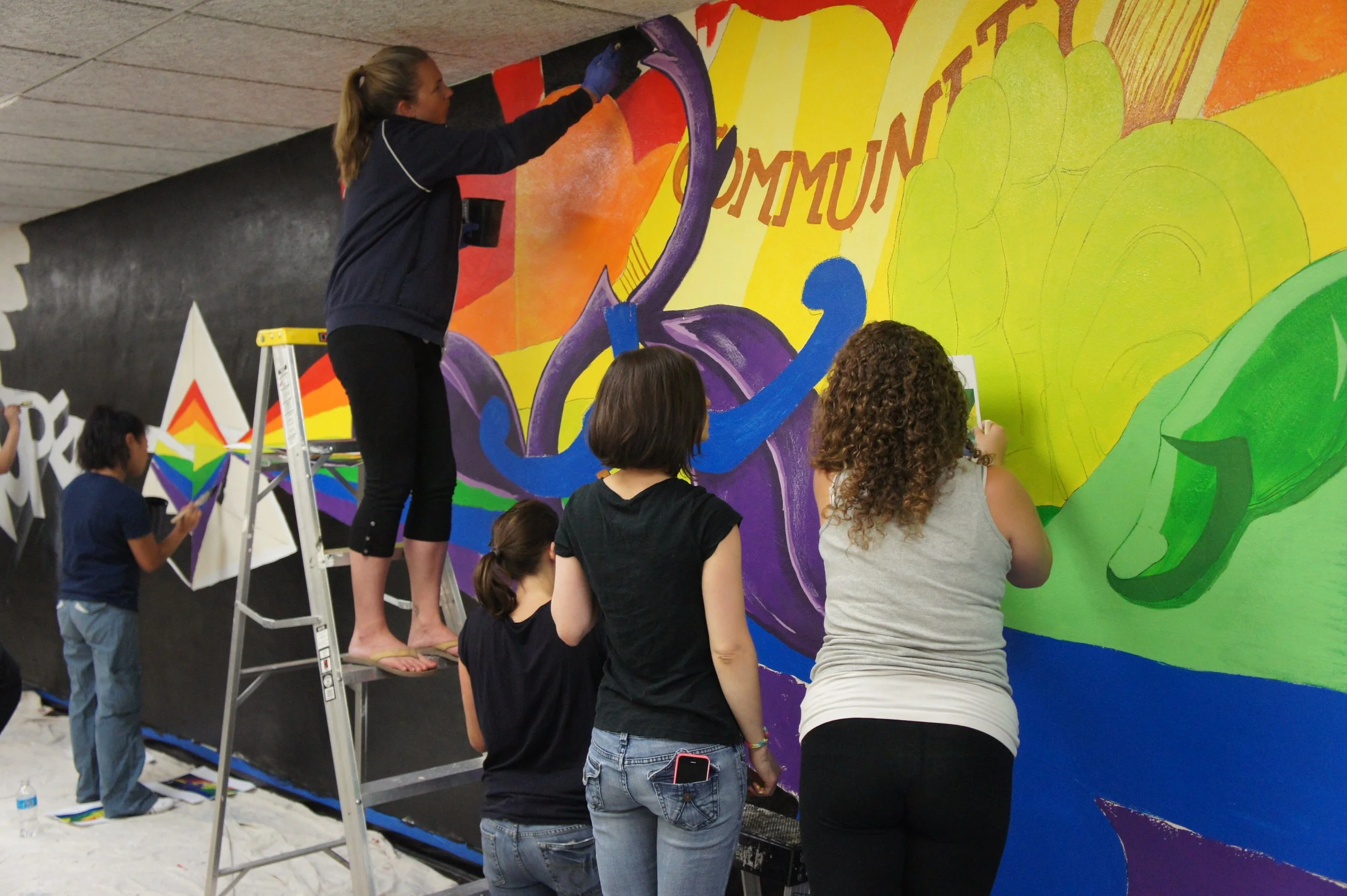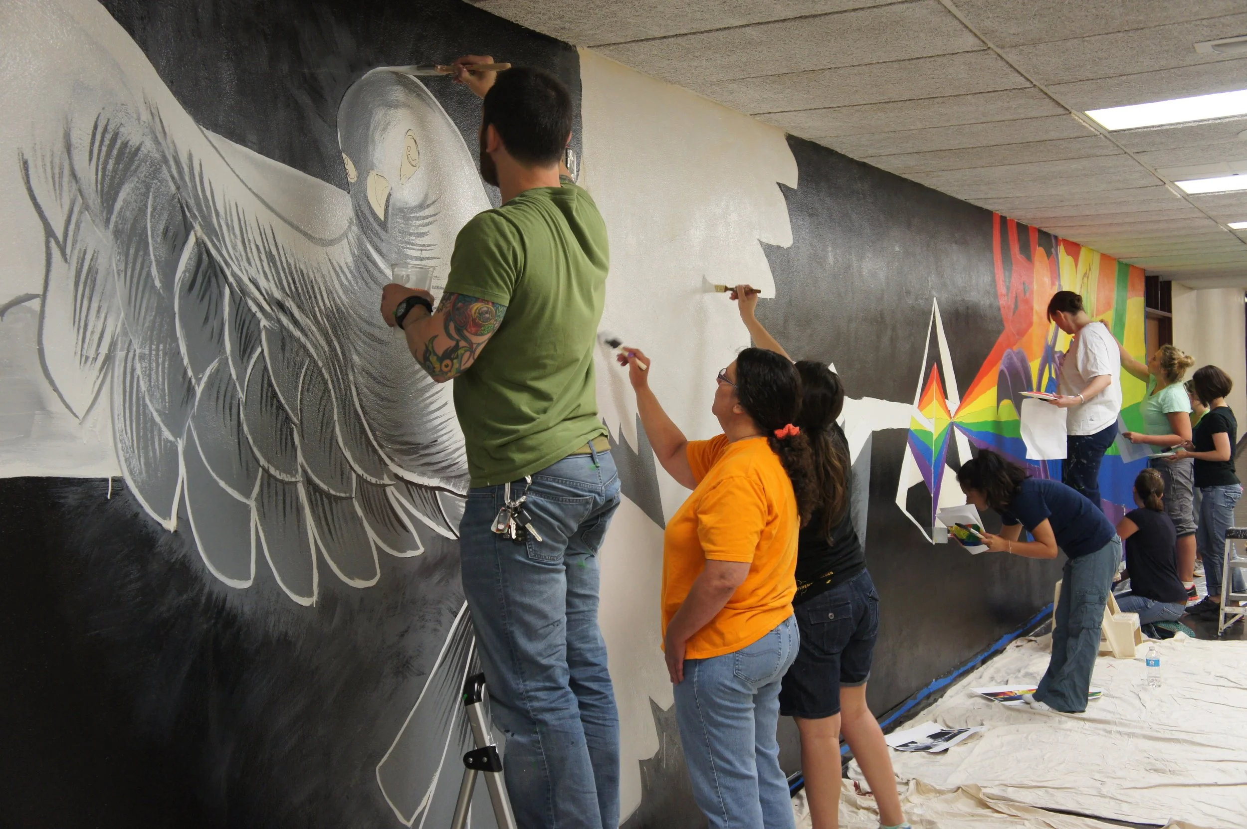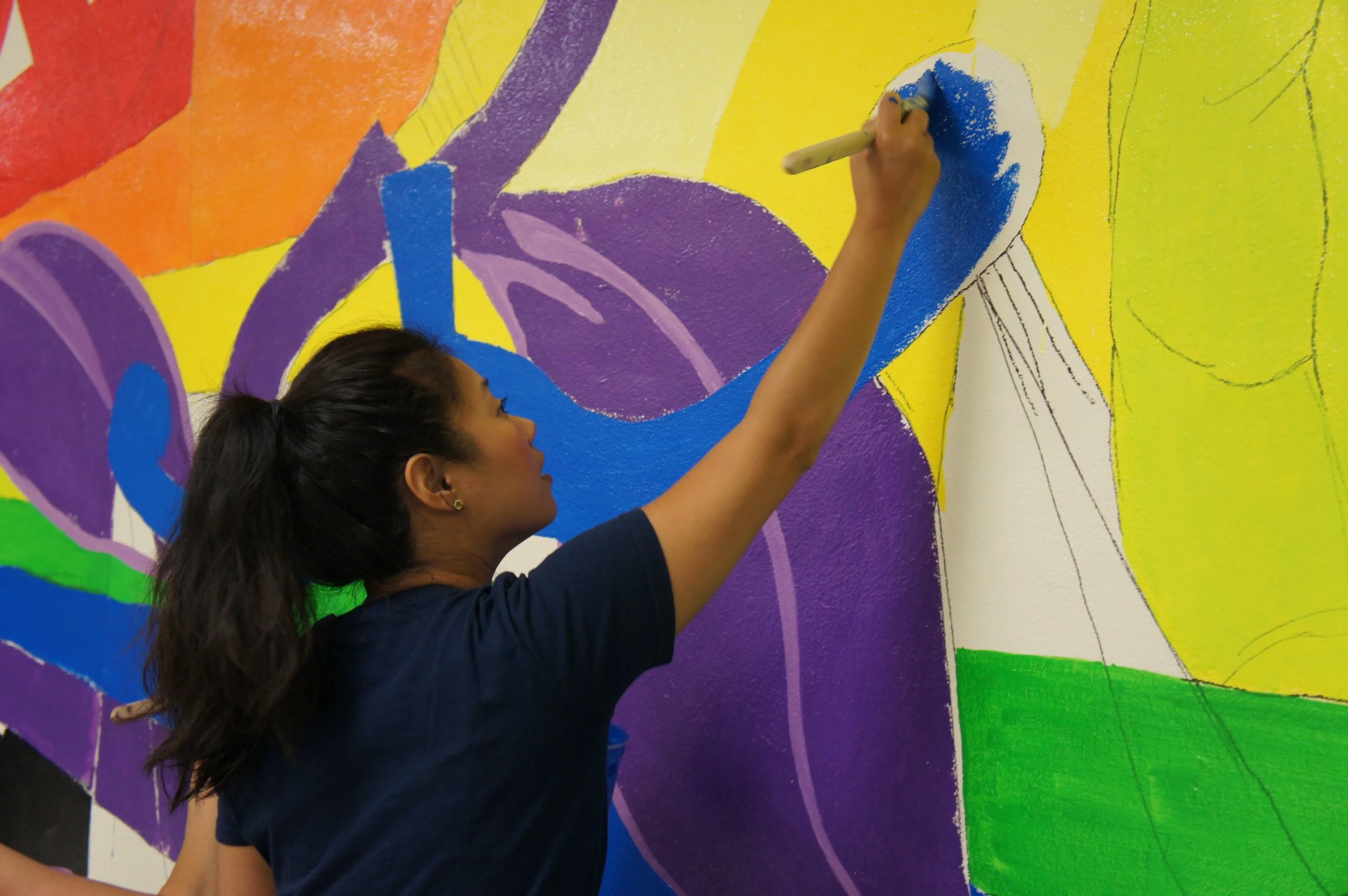 I collaborated with Domus’s administration to incorporate the tenets of their organization into the design of the mural, including them in every step of its development. I coordinated preparation with a partner in my employer’s human resources department and organized the volunteers to execute the application of this mural in a single day.
