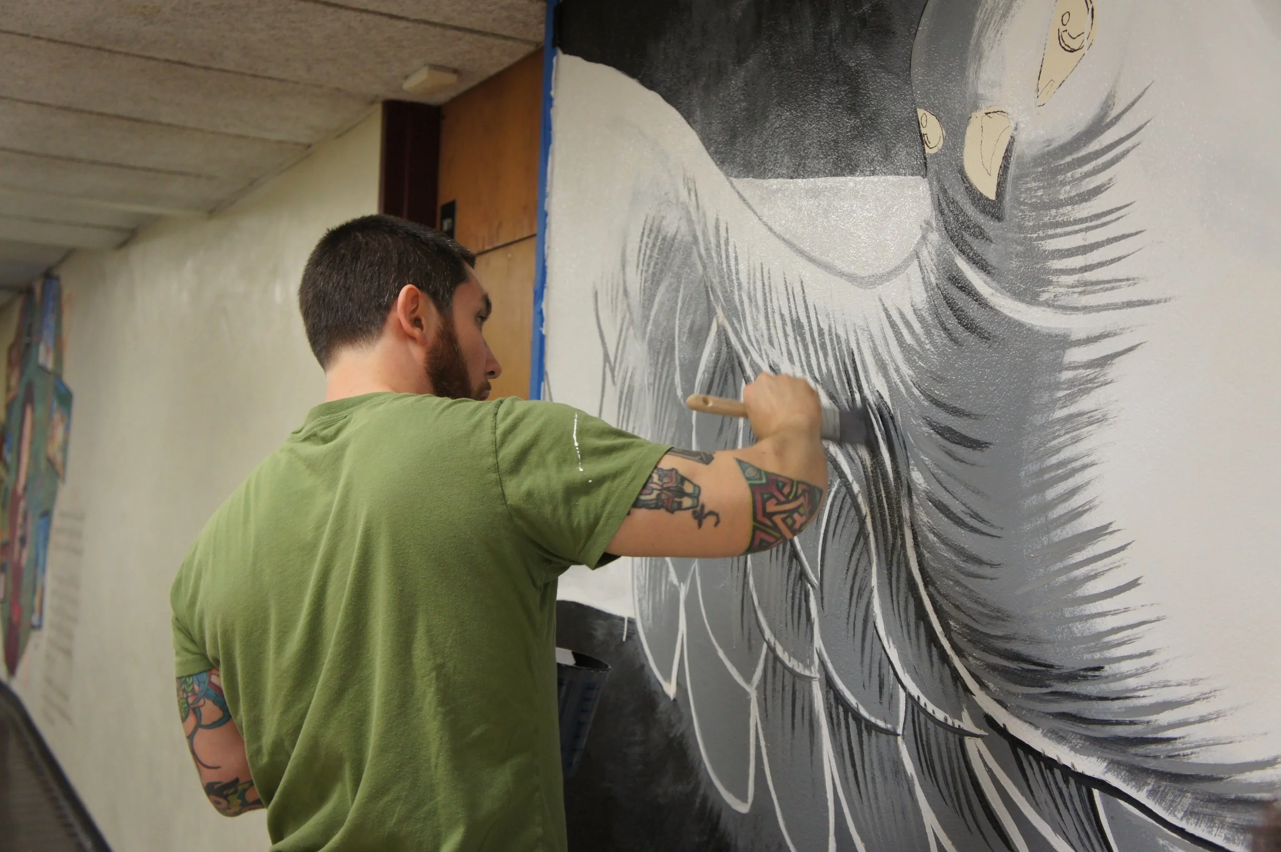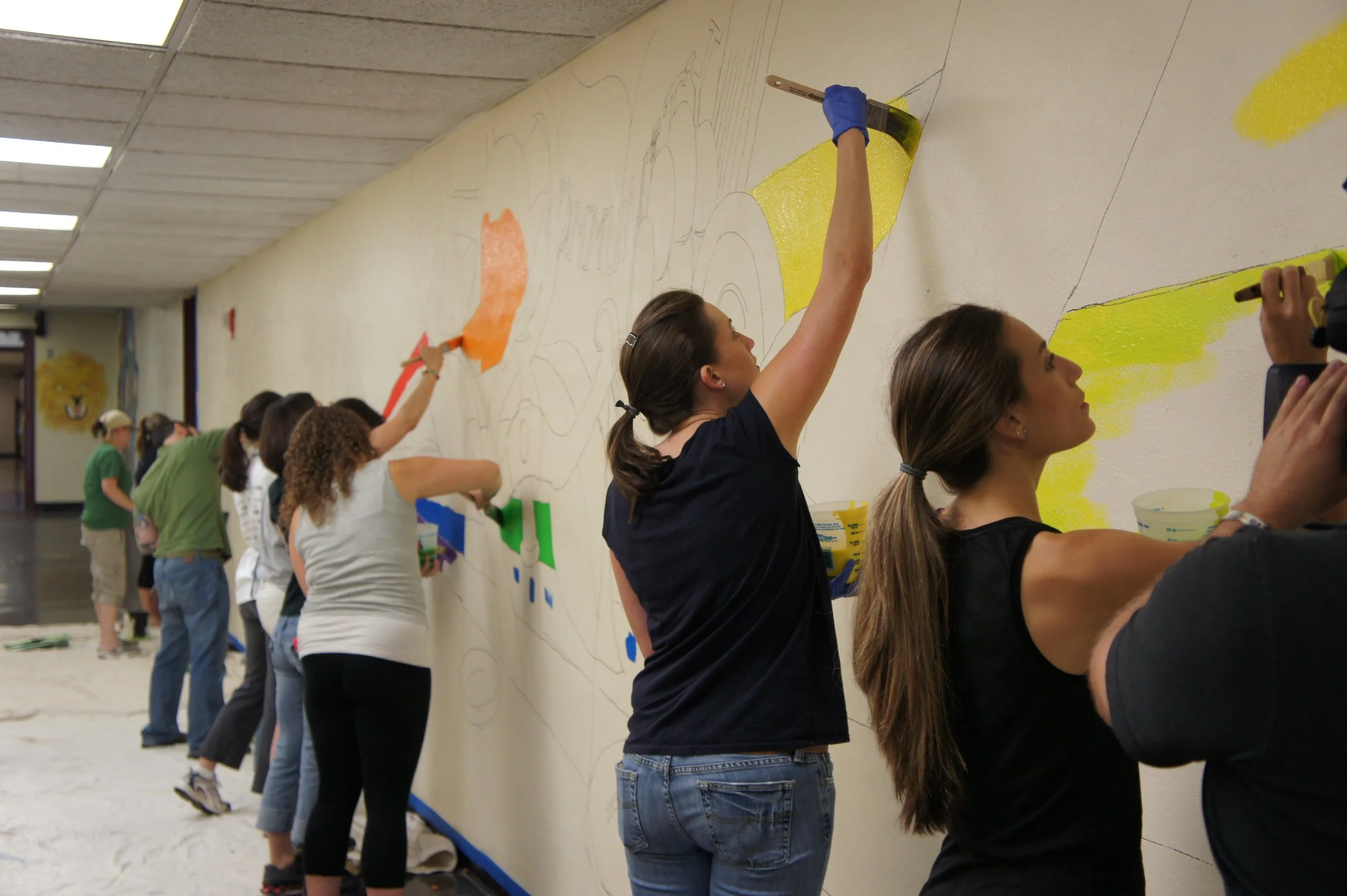 The Domus Trailblazers Academy is a school in Stamford, CT that provides troubled youths with programs designed to foster engagement through love. It recognizes the adversity their kids face and supports them no matter what, giving them the attention they need to become contributing members of society. I volunteered and organized a group of my co-workers to paint this mural in a hallway of their facility.