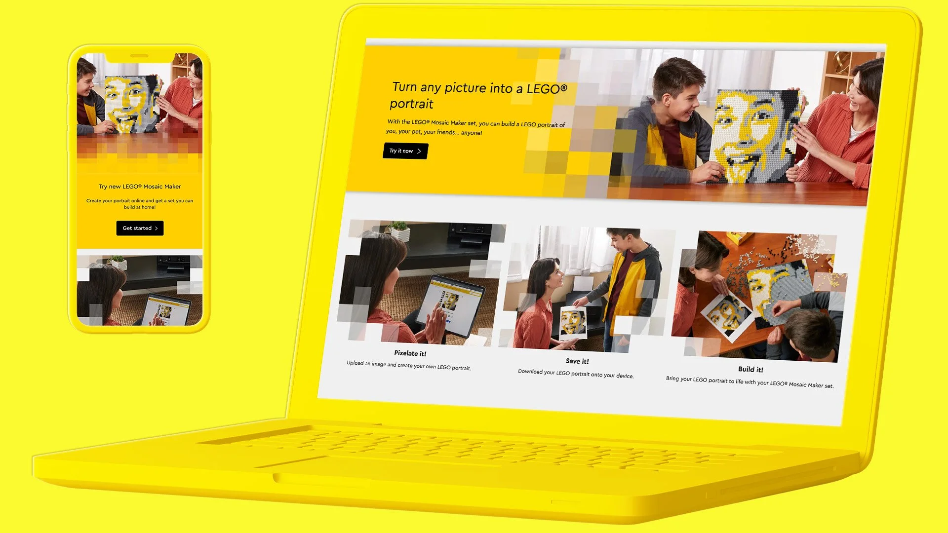 One of my first projects at the LEGO group was the promotion of the mosaic maker application on LEGO.com. Formerly, the product had only been available in stores with a sort of photo booth installation.
